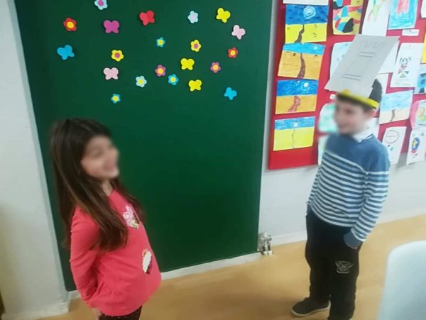 Με τους μικρούς σκακιστές φορέσαμε στεφάνια, τοποθετήσαμε τις σκακιστικές κάρτες και παίξαμε το γνωστό επιτραπέζιο παιχνίδι “Τι είμαι; ”