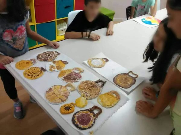 Ανάμεσα στα πήλινα σκεύη που χρησιμοποιούσαν στην καθημερινή τους ζωή ή σε διάφορες τελετές ξεχωρίσαμε τα “τηγανόσχημα” που θυμίζουν τηγάνια και γι’ αυτό ονομάστηκαν έτσι. Ορισμένοι αρχαιολόγοι πιστεύουν πως ήταν καθρέφτες, τύμπανα ή δίσκοι προσφορών. Τα παιδιά κλήθηκαν να δημιουργήσουν τα δικά τους αγγεία από πηλό, διακοσμώντάς τα με όποιο τρόπο ήθελαν!